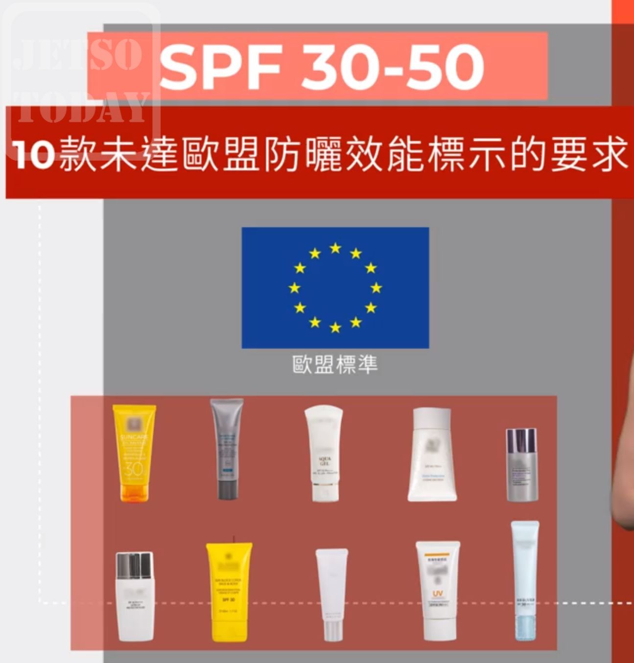 消委會今日(15日)公布,早前測試市面上30款日常防曬產品,包括SPF和UVA防曬效能,發現當中25款產品,即超過8成未能達到標示的SPF防曬效能,其中4款的防曬效能不足SPF15,有機會令用家因得不到足夠的保護而曬傷。消委會敦促廠商切實檢視生產技術和流程,並準確標示其防曬效能,提供清晰的產品資料和使用方法。
