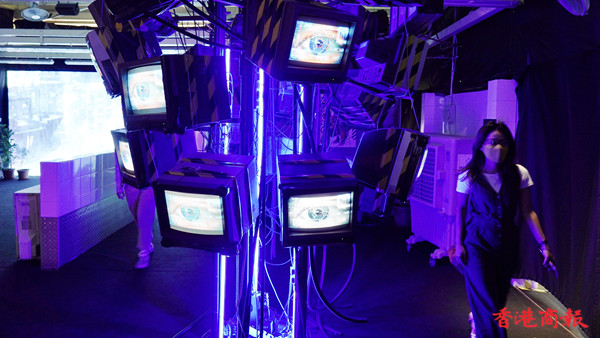數碼龐克的藝術風格早在《阿基拉》、《銀翼殺手》、《攻殼機動隊》等經典電影作品出現。近日在深水埗通州街臨時街市,舉辦了一個以數碼龐克藝術作主題的展覽「數碼龐克號」。場內的藝術裝置,展示了數碼龐克的特點,藝術品充分表現了色彩與光影、電子與生活的結合。展覽吸引了市民們到場打卡,吸收藝術氣息。(記者馮俊文攝)