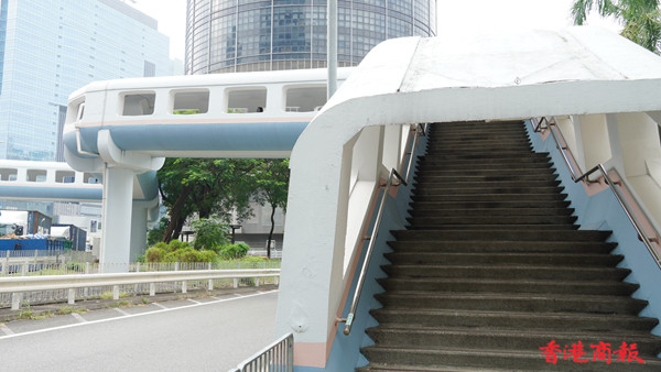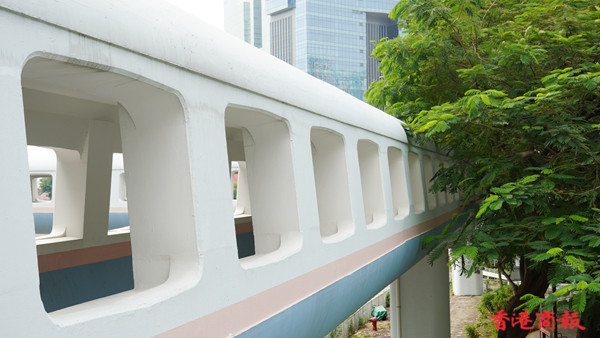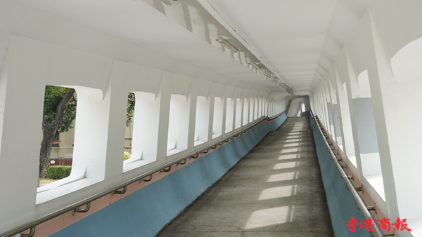「志明橋」於1970年末至1980年初修建,由政府工程師設計,着重實用及耐用性。天橋的石屎用料堅固,上蓋讓行人免於雨淋日曬,類似圓拱形隧道的頂部設計亦方便去水。雖然「志明橋」在設計上沒有美學考慮,但其外牆以粉色和藍色為主調,產生清新的感覺。橋身兩旁設有多個長方形風口位,從內看外能形成電視框的構圖。(記者馮俊文攝)