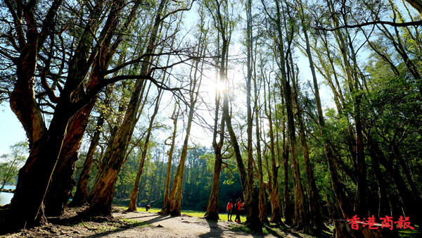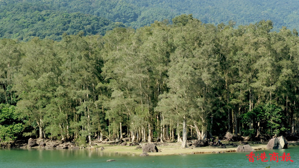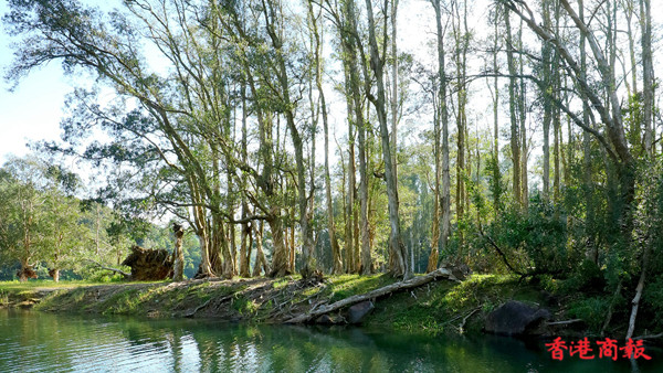 雨季時可欣賞到水浸白千層奇觀,沒有水時這裏風景開掦,遠眺對岸翠綠樹林,形成優美的倒影,令人想起黃霑先生一首歌的歌詞:「湖海洗我胸襟,河山飄我影蹤,雲彩揮去卻不去,贏得一身清風。」細心望向水中,小魚游弋,微風輕拂,為緊張的疫情生活帶來點點心靈治癒。(記者馮瀚文攝)