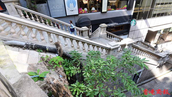 不過,自2018年9月16日超強颱風「山竹」襲港後,石階幾被摧毀。其中一棵石牆樹被吹塌,壓毀石階左面扶手及水泥花瓶,裂成200多塊殘件;4盞煤氣燈更有3枝倒下,其中一支斷裂。古物古跡辦事處、路政署與煤氣公司花費一年多時間,以原材料及原工藝原則維修,並委託英國原供應商修復煤氣燈,去年12月23日終修復成功回復舊貌,4盞煤氣路燈,重新照亮這個歷經風雨的古跡。(記者崔俊良攝)