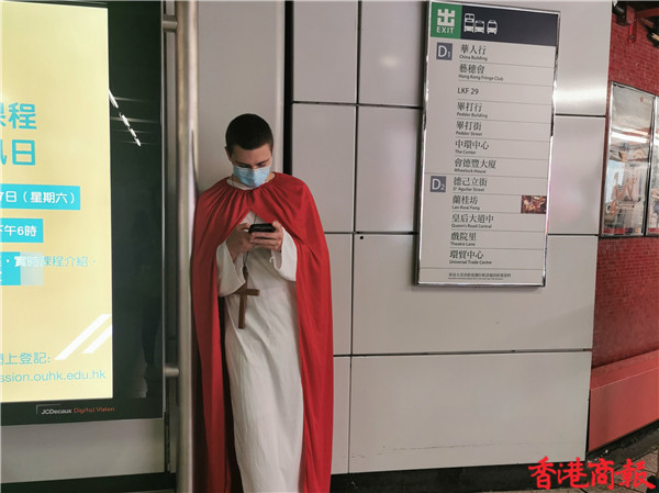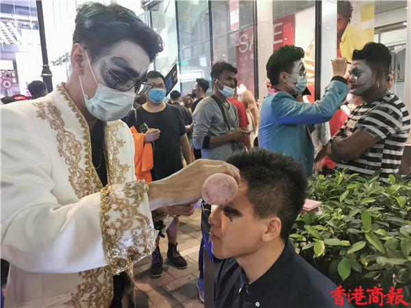 一年一度的萬聖節來臨,市民的熱情未因新冠肺炎和限聚令消減,中環蘭桂坊的酒吧張燈結綵人頭涌涌。由於去現場的人太多,為了進行人流管控防止發生危險,警察提高戒備圍起公共通道。從地鐵站出來差不多要繞一個小時的路才能抵達蘭桂坊。