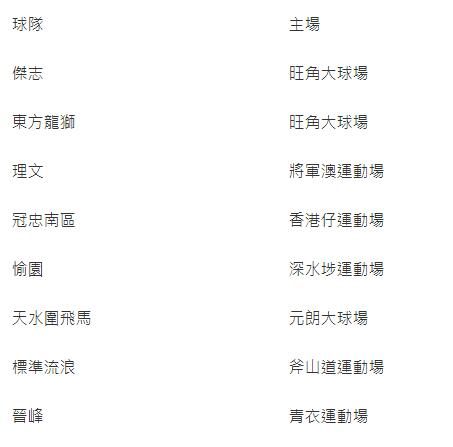 至於8支港超球隊主場編配如下: