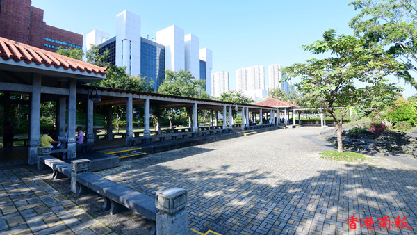 沙田公園內鳥語花香,現正秋意濃濃,更適合賞花感受微涼秋色。沙田公園內設有多個特色花園,栽種了400種、約11萬株本地及外來植物,以藍花楹最為馳名。在源禾路出入口旁草地,種植了10多棵藍花楹,每年4至5月間盛開後形成紫色花海,引人入勝。(記者崔俊良攝)