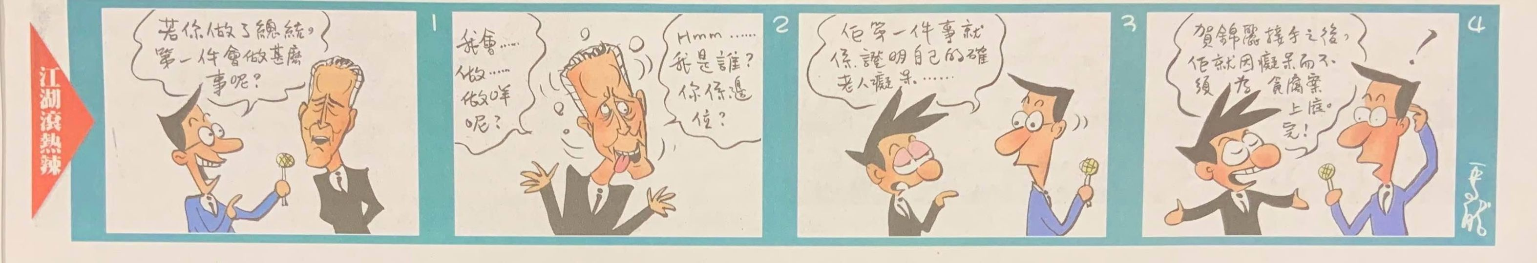 全國政協副主席梁振英6日在社交網站貼出蘋果日報刊登的漫畫,指對方繼續抹黑美國總統參選人拜登。他還在貼文詢問黎智英助手 Mark Simon的辭職是否已經生效。