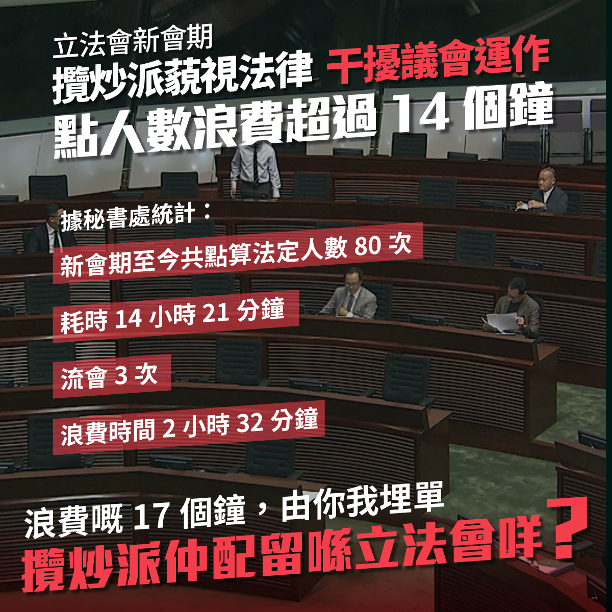 攬炒派新會期80次點人數 企圖癱瘓議會阻民生