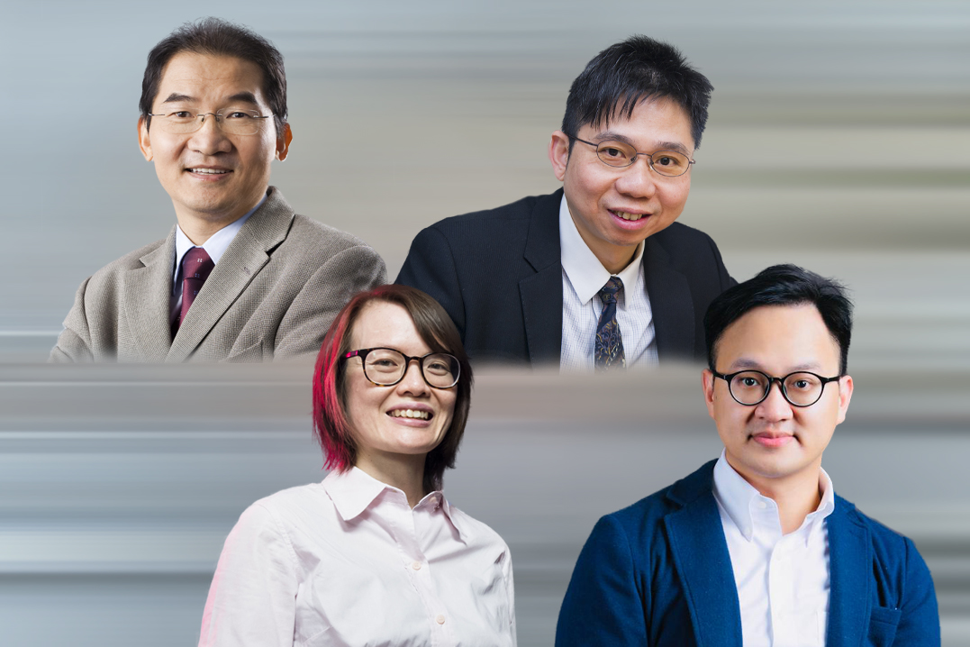 圖片說明:上方是生物醫學系楊建文講座教授(生物醫學)楊夢甦和電機工程學系講座教授梁國華、下方是機械工程學系助理教授Steven Wang博士和生物醫學系及電機工程學系助理教授陳紀行博士。