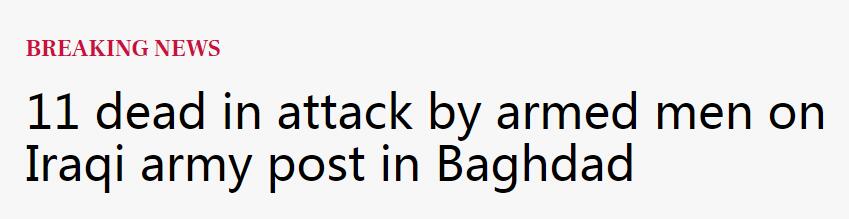 據外媒,當地時間9日淩晨,在伊拉克首都巴格達西部,武裝分子襲擊了伊拉克陸軍哨所,造成至少11人死亡。