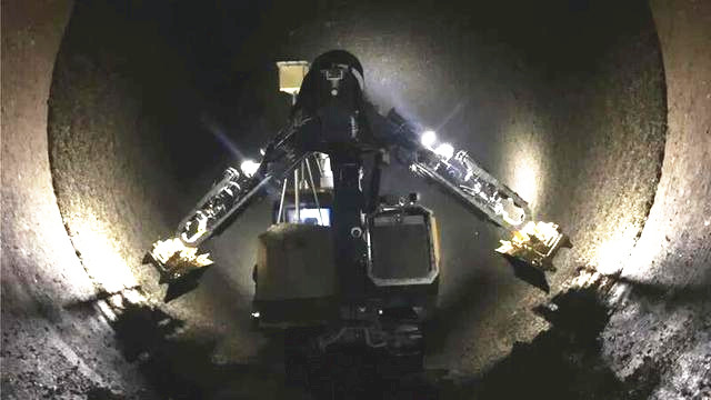 「前進、展臂、清理、收回」,TCR7500隧道清理機械人一番遠程操作,海底隧道圓弧面附着的雜質便被輕鬆清除。