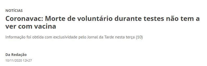當地時間10日,巴西媒體TV Cultura報道稱,已經看過涉事實驗志願者的驗屍報告,指當事人的死亡與疫苗無關,是自殺。