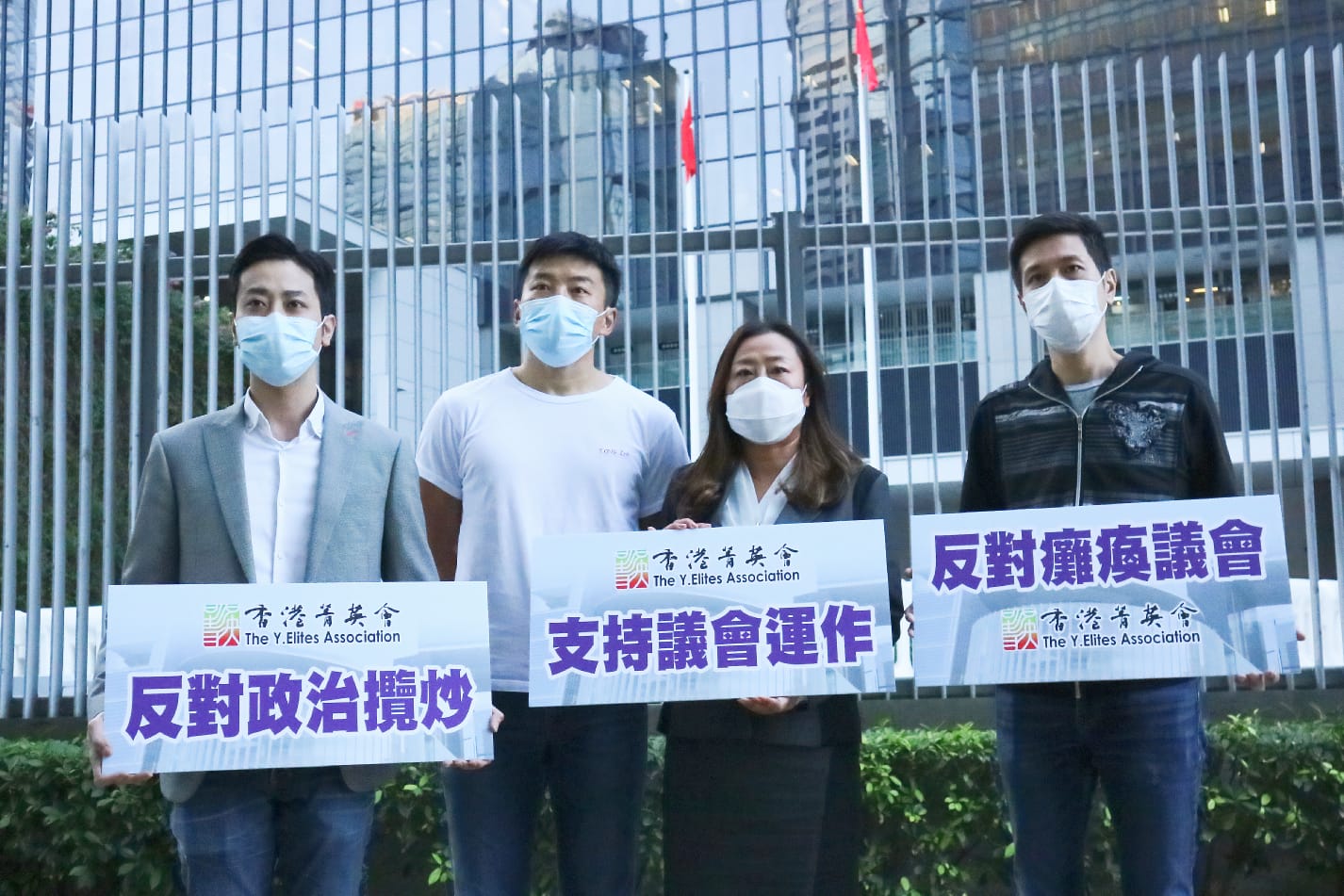 今日下午前來表達支持的團體分別有香港菁英會,DQ大聯盟、離島監察議會聯盟、西貢關愛社區聯盟、屯門區漁民、黃大仙市民反拉布關注組。(記者 李銘欣 圖片 馮翰文 攝) ;