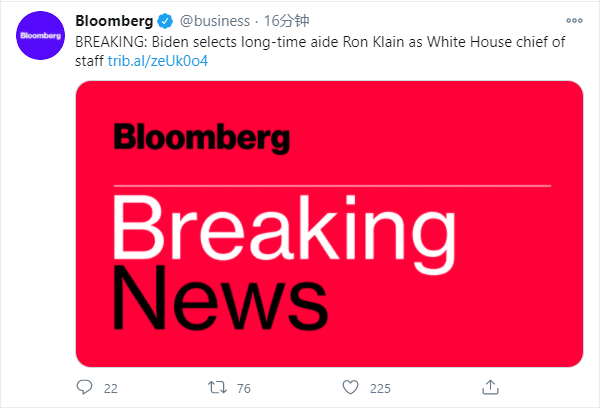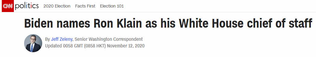 據美國彭博社12日消息,美國「當選總統」拜登選擇長期擔任其助手的羅恩·克萊因(Ron Klain)擔任白宮辦公廳主任。