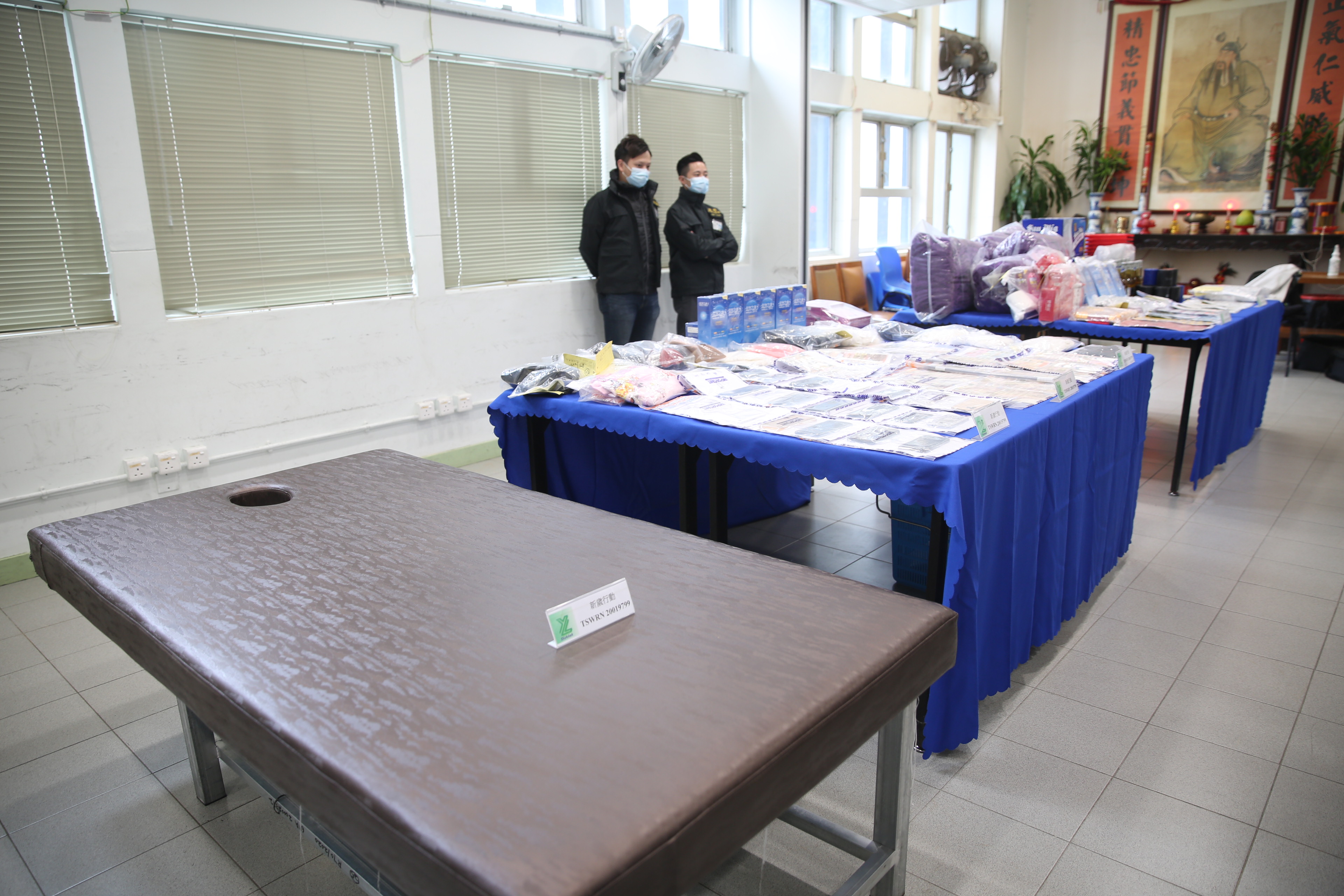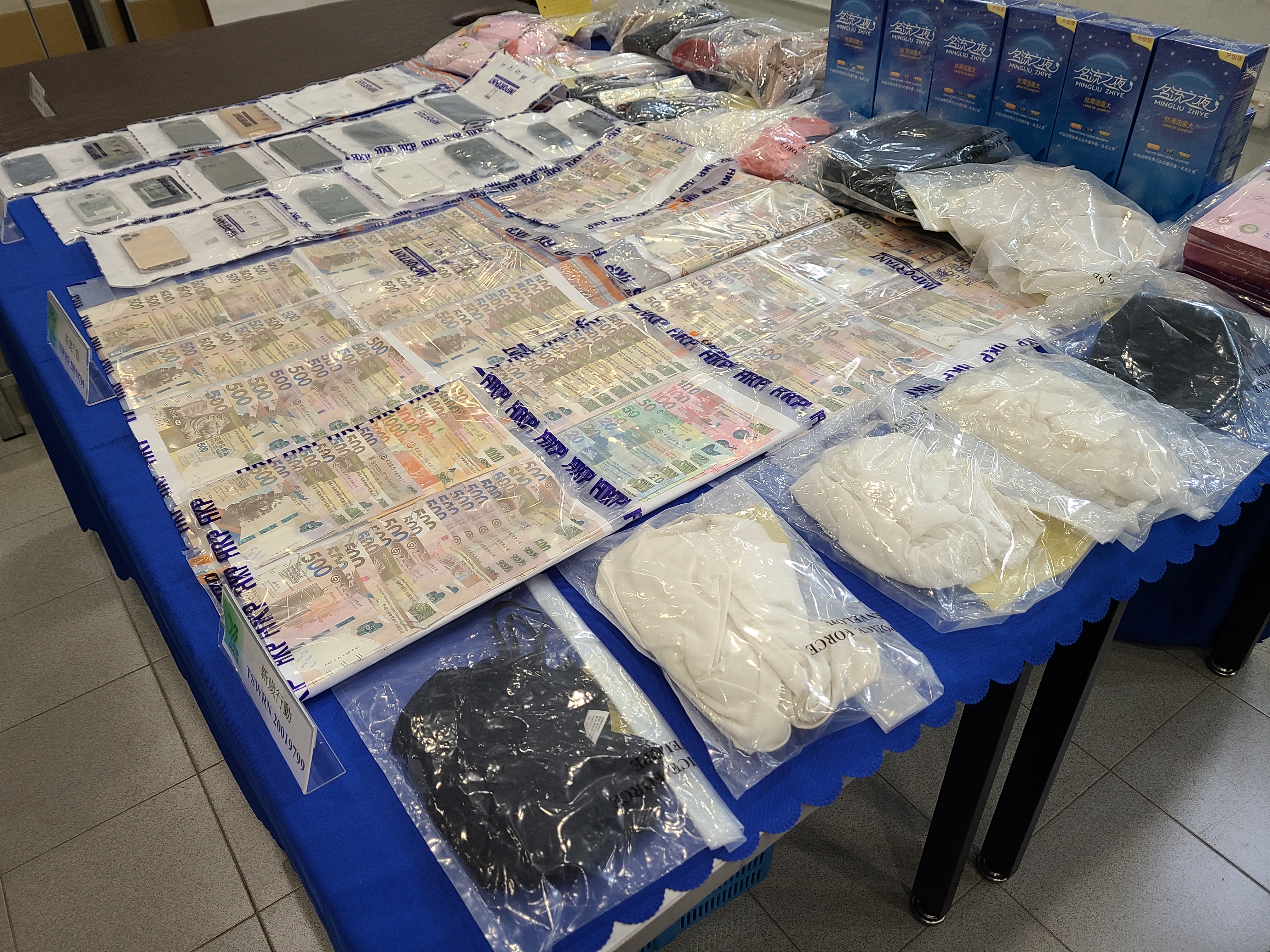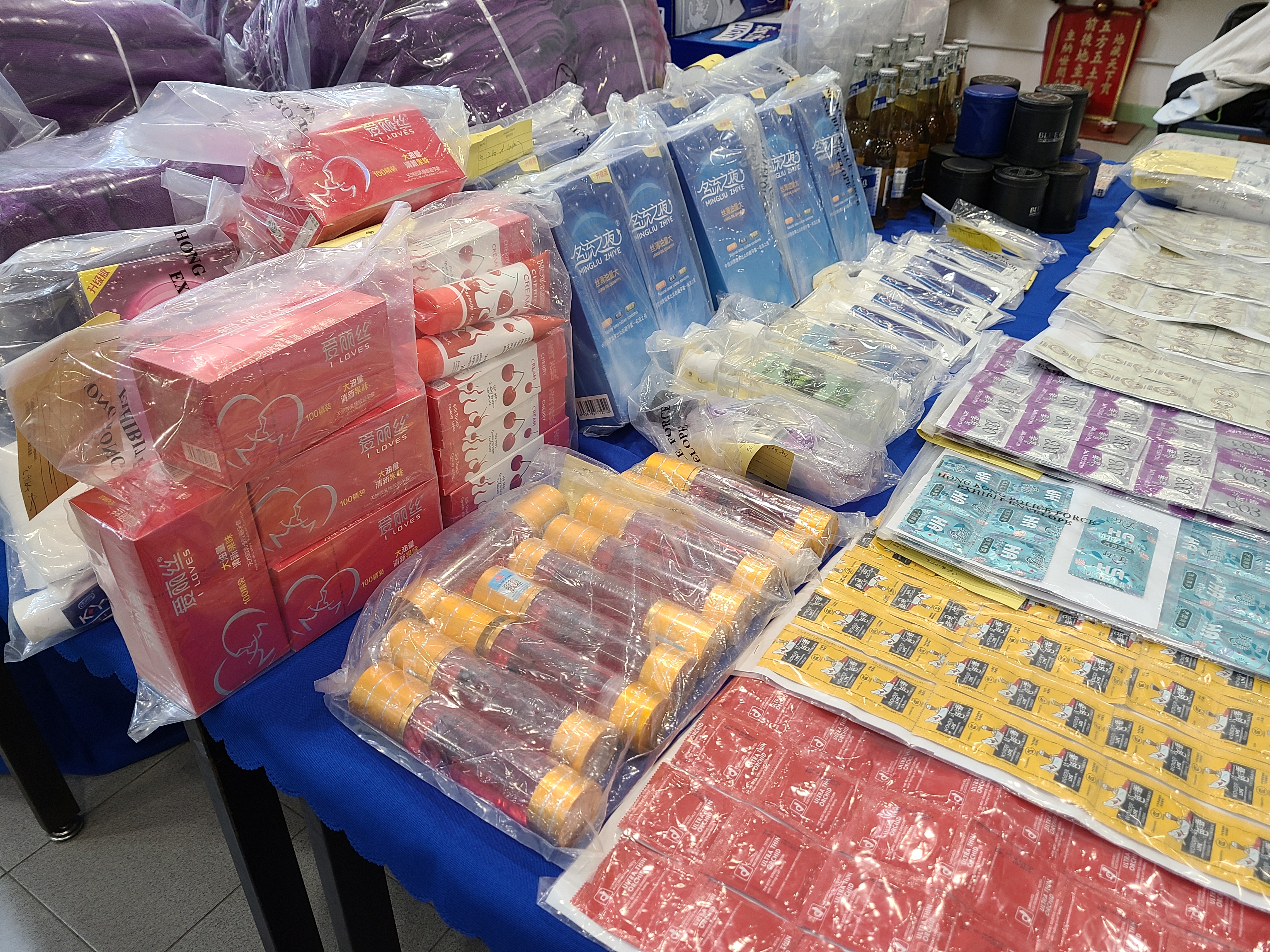 警方在行動中檢獲大批與賣淫相關物品,包括性感內衣