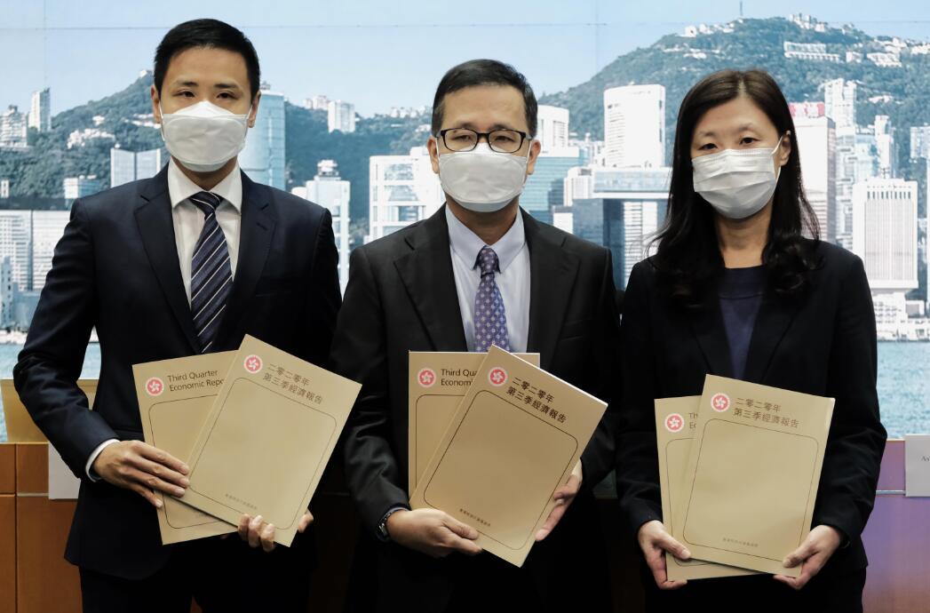 分類表現方面,私人消費開支跌幅大幅收窄,由第二季跌14.2%,收窄6個百分點至第三季的8.2%跌幅。整體貨物出口更由負轉正,由第二季跌2.2%,扭轉為第三季升3.9%。雖然訪港旅遊業停頓,但受惠多隻大型新股於第三季上市,服務輸出的按年跌幅,已由第二季的跌45.6%,大幅收窄11個百分點,至第三季的跌34.6%。