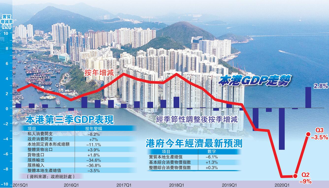 本港第三季GDP跌幅收窄至3.5% 扭轉連續5個季度的跌勢
