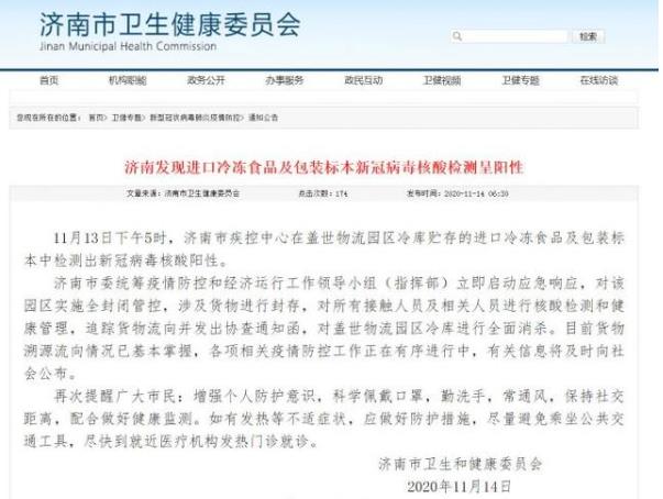 11月14日,據濟南市衛健委消息,蓋世物流園貯存的進口冷凍食品及包裝標本檢出新冠病毒核酸陽性。當地連夜對該園區封閉管控,對涉及貨物進行封存,對接觸人員及相關人員進行核酸檢測,對蓋世物流園冷庫全面消殺。目前,貨物溯源流向情況已基本掌握。