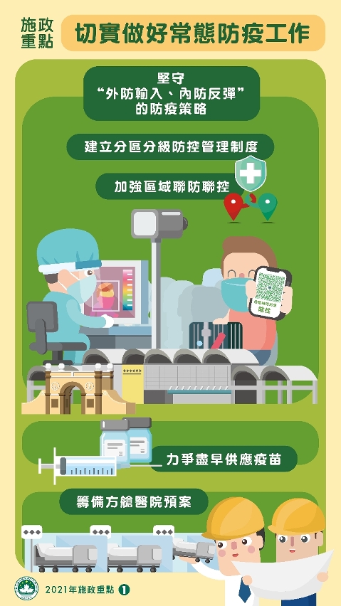 賀一誠表示,在不斷鞏固現有防疫成果的同時,將進一步完善新冠肺炎疫情防控機制和重大公共衛生事件的應對機制,善用電子化防疫技術,保障隔離設施、藥物和後勤物資充足,籌備方艙醫院的預案。