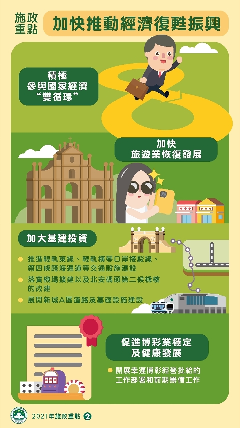 賀一誠施政報告中預期,2021年疫情依然是影響澳門經濟發展的最大制約因素。