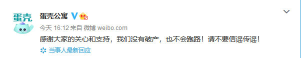 內地住房租賃初創蛋殼公寓在微博表示,該公司沒有破產,也不會跑路,並請不要信謠傳謠。