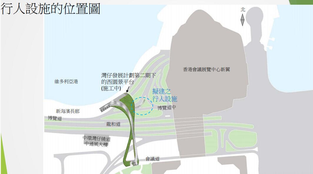 去年12月開展的灣仔發展計劃第二期建造工程中,港府擬於灣仔會展西面、靠近港灣道君悅酒店旁邊的平台花園,興建一個西園景平台,連接平台花園及灣仔海濱長廊。土木工程拓展署近日向灣仔區議會提交文件,公布西園景平台的設計。文件顯示,西園景平台橫跨會議道、龍和道和博覽道,提供約3.65萬呎以維港作為背景的高架休閒空間,預計於2023年年底至2024年年初完成工程。