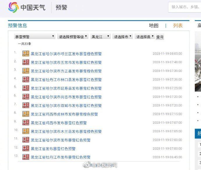 今天凌晨开始,黑龙江连发20个暴雪预警,并发布全省范围的暴雪红色预警。为应对强降雪,黑龙江省气象局提升气象灾害(暴雪)Ⅳ级应急响应为Ⅱ级;哈尔滨市教育局下发紧急通知,哈尔滨中小学幼儿园停课1天。