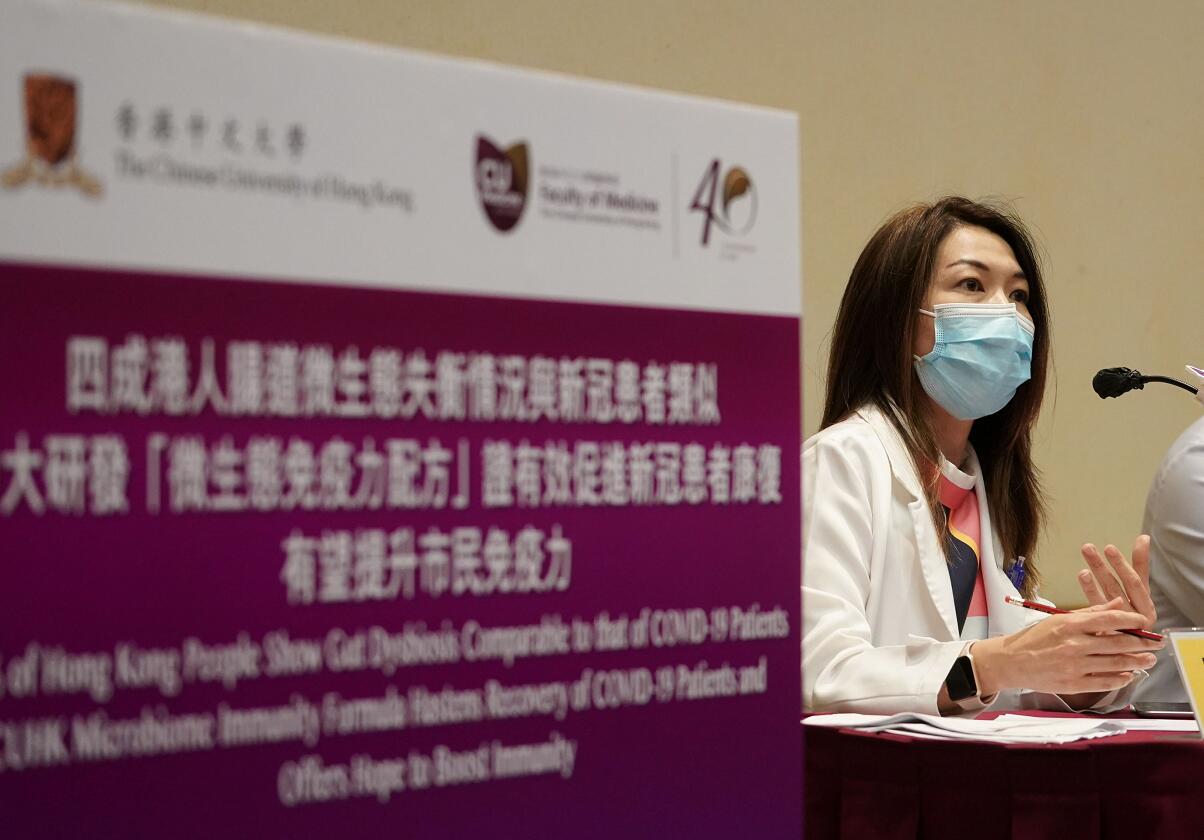 中大醫學院腸道微生物群研究中心副主任黃秀娟解釋,研究結果顯示中大醫學院研發的「微生態免疫力配方」,能透過改善腸道微生態失衡,促進新冠肺炎患者痊癒、增加中和抗體及提升免疫力。