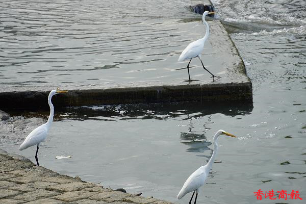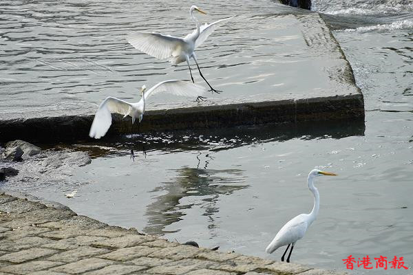 在沙田城門河一帶,白鷺足跡處處,種類也有不同。白鷺屬鷺科鳥類的統稱,其中大白鷺、中白鷺、小白鷺、黃嘴白鷺和雪鷺的羽毛都是全白色,繁殖期會長出絲狀的繁殖羽。白鷺們的長相和習性都差不多,長腿長嘴。白鷺以各種小魚、蛙類、蝦、昆蟲等動物作為食糧,也有吃少量穀物等植物。白鷺出沒的地方,也會吸引路人停下觀看,及一些攝影發燒友拍攝牠們的動態。(記者 馮俊文攝)