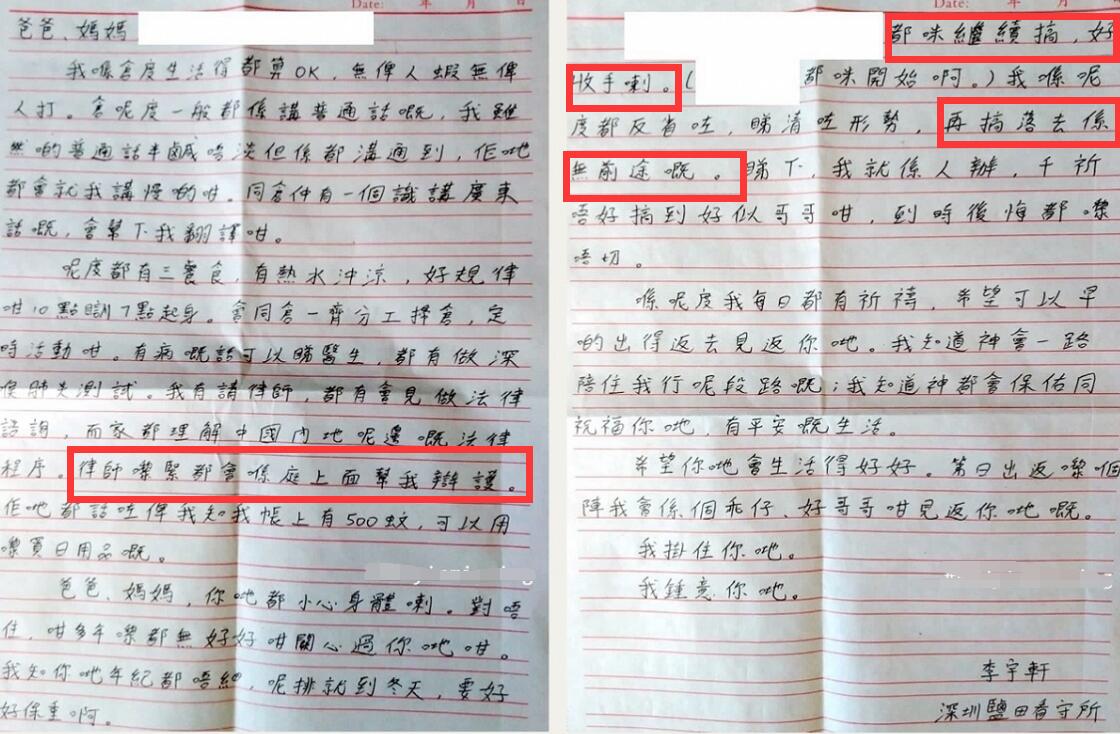 早前涉非法越境在內地被捕的12名港人,其中李宇軒涉違香港國安法棄保潛逃。日前李宇軒的家人在社交平台發布李宇軒的家書,李宇軒在信中敦促家人「收手」,指「再搞落去無前途」。
