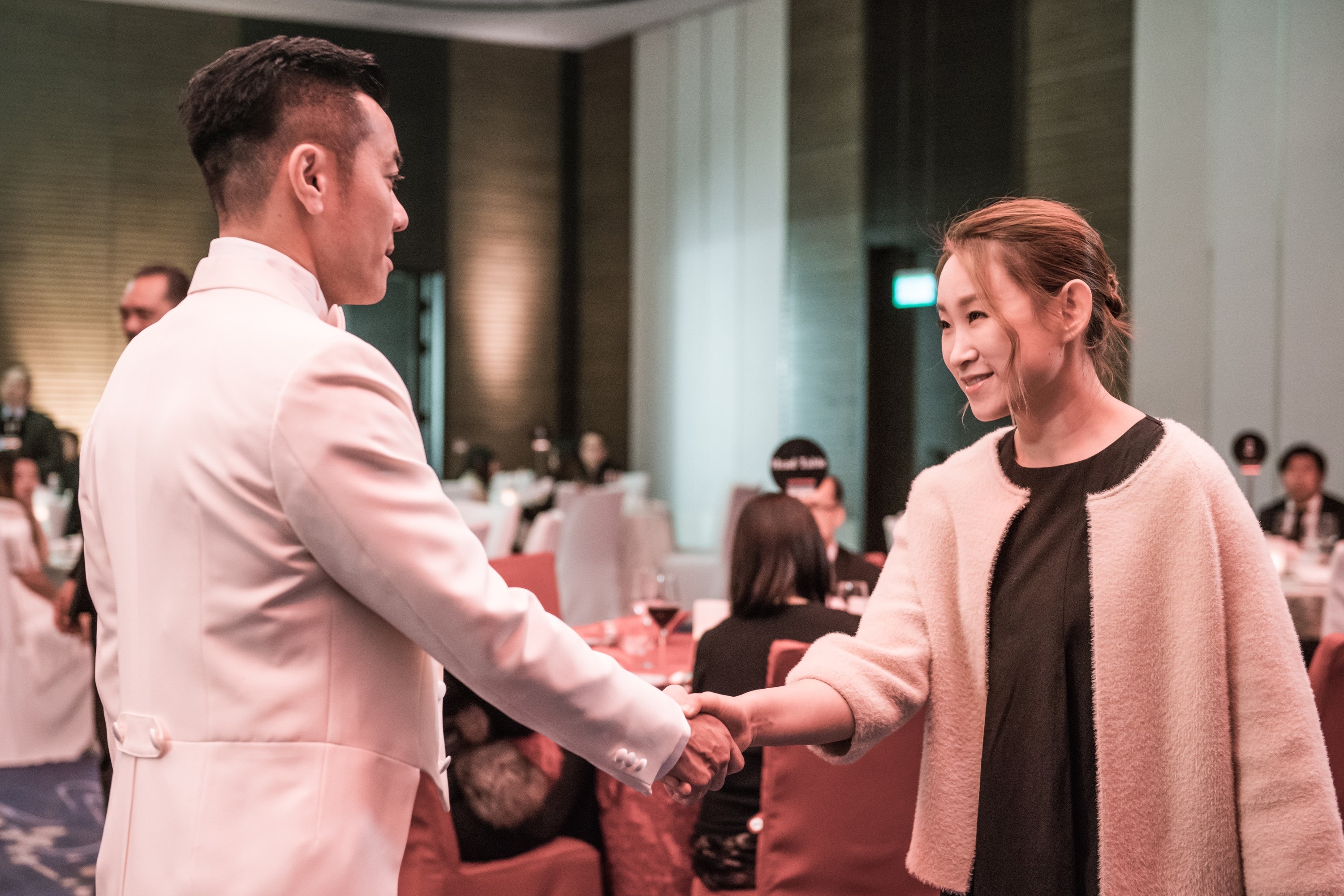 樂天的王菀之(右)出席前男友梁漢文(左)的婚禮,大方送上祝福。
