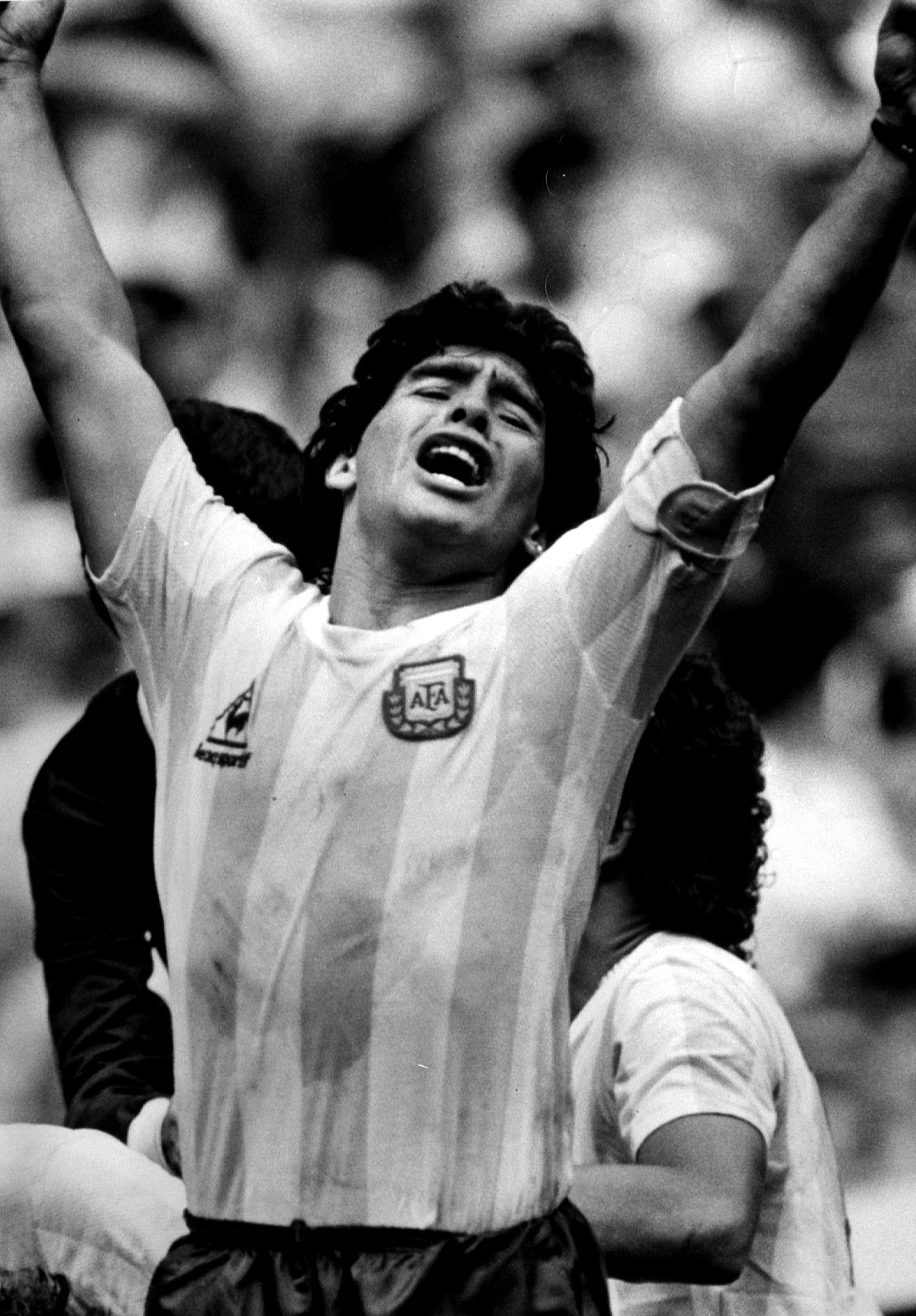 他之後以一人之力獨闖英格蘭腹地,扭過5個英軍守將後射入傳頌至今的世紀金球,領軍2:0贏波出線。他在四強對比利時再入兩球,決賽被西德全場緊盯下,仍成功在完場前交出助攻,為阿根廷奠定3:2勝局並第二度奪得世界盃,鎖定超級巨星地位。(圖源:路透社)