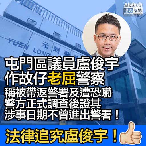 警方表示,較早前發現他在網上社交平台發文污稱,他上星期六晚在元朗區被警員恐嚇,並無故被帶回警署,期間拒絕他見法律代表,最後無條件釋放。警方高度重視事件,並派出一定警力調查,發現被捕男子當晚並無於元朗區被捕,亦沒有在元朗區進入過任何警署。