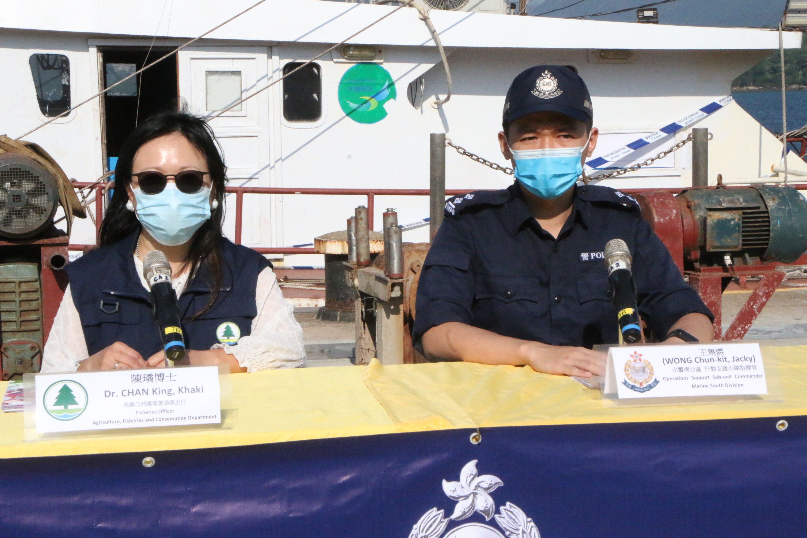 南水警分區行動支援小隊指揮官王雋傑高級督察表示,水警總區在反非法捕魚案件中制訂恆常的計劃,協助漁護署報行香港法例第171章《漁業保護條例》,在行動期間協助漁護署人員截停和搜查非法捕魚船隻。