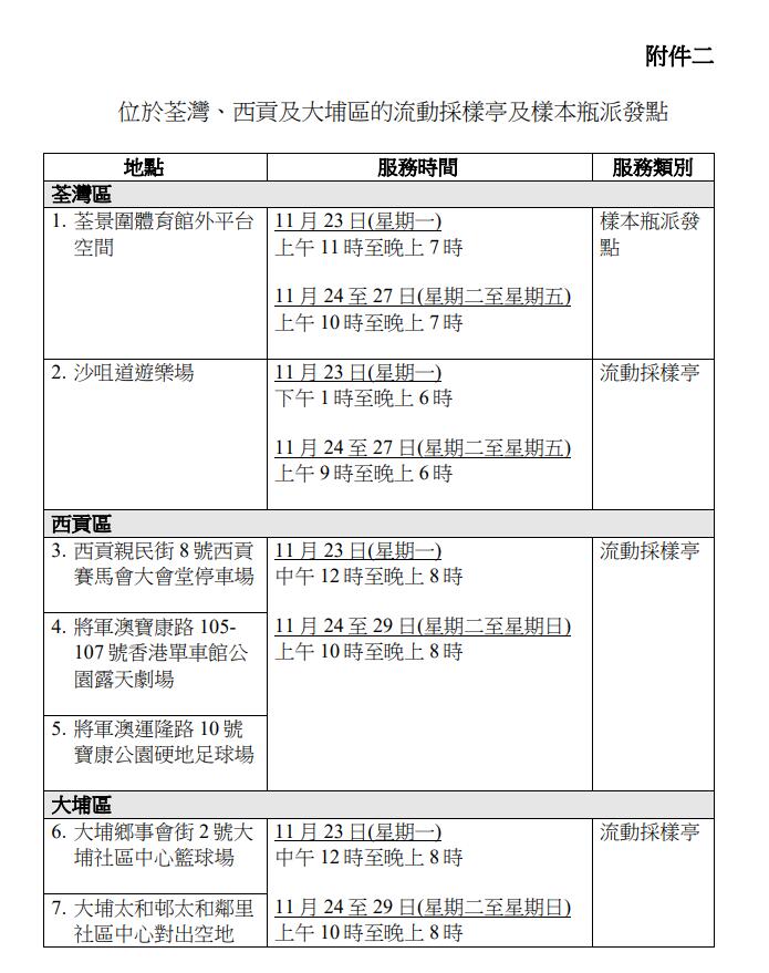 (四)於七個流動採樣亭及樣本瓶派發點接受檢測服務,或索取並交回樣本瓶(名單見附件二);