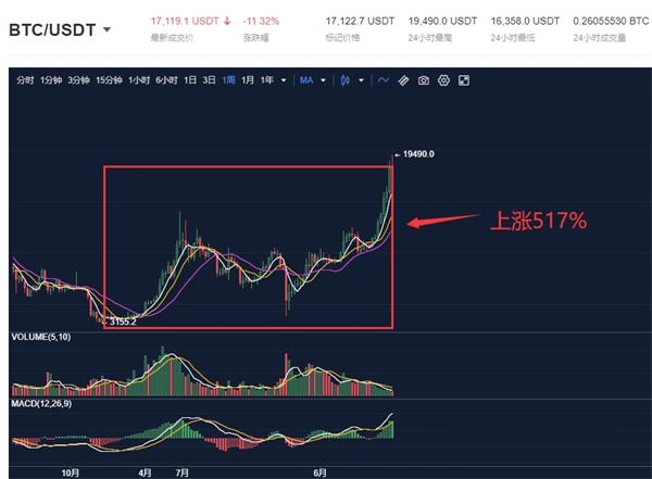 自10月以來,比特幣一路上漲,從10000美元飆至19500美元,近乎翻倍;如果從2019年12月的低點起算,比特幣價格年內已經翻了超5倍。