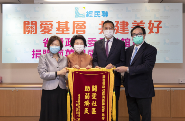 港區省級政協委員聯誼會主席鄭翔玲、聯誼會會長施榮懷代表聯誼會將物資送到經民聯總部,並由經民聯監事會主席林建岳、主席盧偉國及副主席梁美芬接收。經民聯主席盧偉國對聯誼會的善舉表示衷心感謝,他指欣喜看到香港社會的建設力量齊心一致,為有需要的人士送上關懷與祝福。經民聯將不負所託,與社會各界將社區工作做得更好。