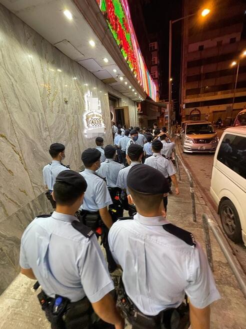 警方指臨近周末,它們會持續於各區娛樂場所及餐飲處所進行執法行動,打擊與三合會有關的罪行。由於新冠肺炎疫情轉趨嚴重,警方亦呼籲市民應盡量減少社交活動,避免到人多聚集的地方,而警方也請市民在遇上它們的巡查行動時,盡量配合及協助警方的工作。(圖片來源:香港警察 Hong Kong Police 臉書(Facebook)專頁。)