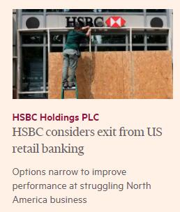 報道指,如關閉美國零售網絡,將標誌着滙豐40年來在美經營提供全方位服務銀行嘗試的結束。