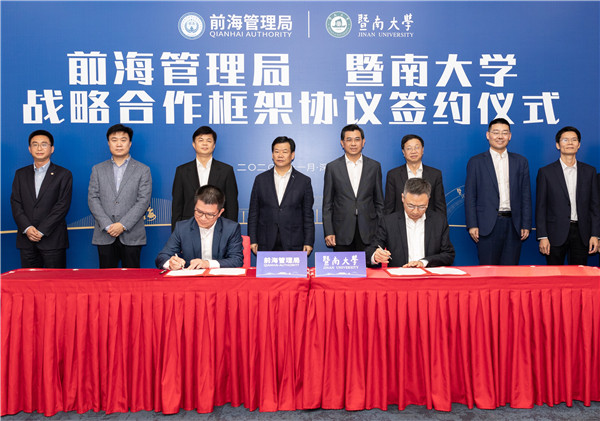 11月28日,深圳市前海管理局與暨南大學在前海簽署戰略合作框架協議,雙方決定在港澳台僑青年實習實踐、創新創業、交往交流、教育研究等方面開展深度戰略合作,共同打造港澳台僑大學生青年實習實踐平台、創新創業平台、交往交流平台、教育研究平台。深圳市委常委、市政府黨組成員、前海深港合作區黨工委書記黃敏與暨南大學黨委書記林如鵬出席簽約儀式並致辭。