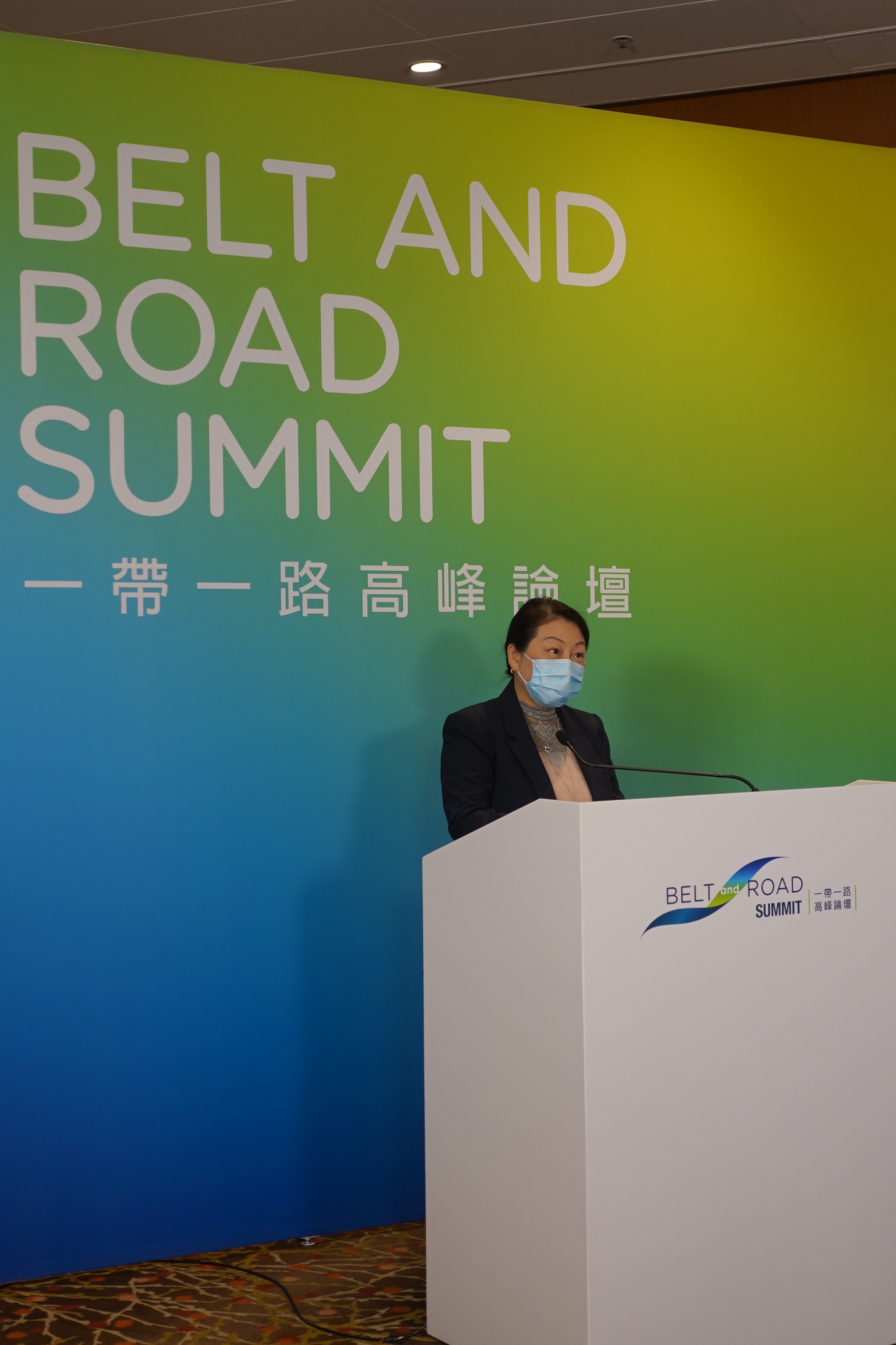 律政司司長鄭若驊在專題分組論壇發言,她向參加者介紹「一帶一路」建設下,香港在促成交易和提供爭議解決服務方面的角色。