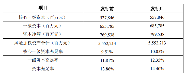 在不考慮發行費用的前提下,是次非公開發行對郵儲銀行資本監管指標的影響如下: