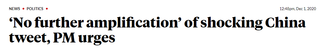 在對漫畫事件反應強烈並宣稱要求中國「道歉」一天後,澳大利亞總理莫里森今天(12月1日)卻突然「滅火」說,不要進一步放大此事。
