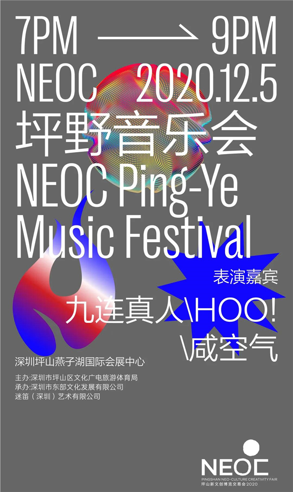 交易會設置NEOC坪野音樂會2020,將新文創融合新國潮跨界推出的音樂現場。將邀請2019愛奇藝《樂隊的夏天》節目參賽樂隊、以「黑馬」的姿態出現在大眾視野的九連真人及廣深本土的咸空氣、HOO!三支樂隊,帶來新文創與樂隊碰撞的視聽盛會。