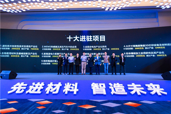會上,二維氮化硼熱管理材料產業化中心、超構吸波材料產業化中心、高性能稀土鎂基新材料等3個院士項目舉行簽約儀式。特種陶瓷纖維及製品產業化,大尺寸高精度陶瓷3D打印設備及材料的產業化,粉體精細加工應用研究及其產業化,全固態電池產業化研究,耐高溫電介質薄膜及其產業化,MEMS傳感器及其在汽車中的應用,速生林木材改性技術及項目產業化,生物醫用材料及器械創新及產業化,生物降解塑料及製品等10個先進材料團隊項目正式進駐大瀝。