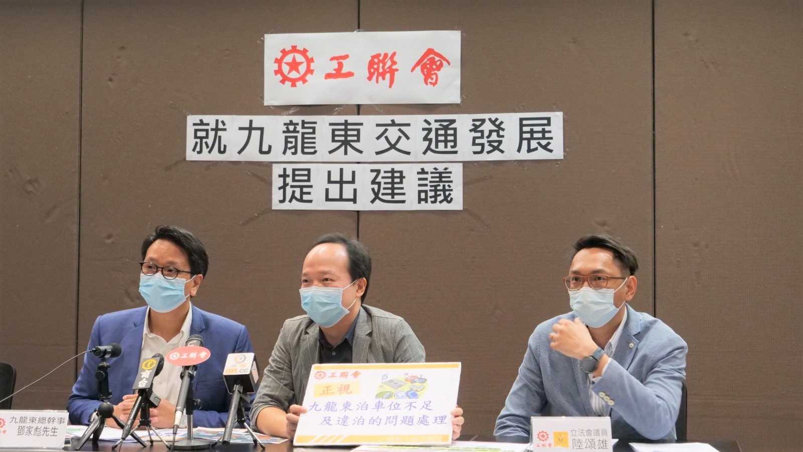 觀塘區區議員簡銘東提到九龍東的泊車位不足,令街上違泊情況嚴重。工聯會建議於商貿區內為商業車輛劃定泊車位,包括中型及重型車輛,並提供夜泊服務及增加咪錶位。長遠而言,工聯會期望政府以「一地多用」原則,於政府設施內興建停車場,以平衡私營停車場的租金價格。