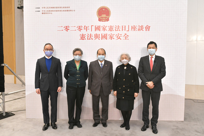 他強調,增強《憲法》和《基本法》的意識、依照《憲法》和《基本法》辦事、堅決維護《憲法》和《基本法》權威是香港社會的共同責任。每個香港市民都必須尊重和遵守,並有義務去深入及正確認識及了解《憲法》和《基本法》,準確把握「一國」和「兩制」的關係,切實維護國家主權、安全和發展利益、維護香港繁榮穩定和廣大港人福祉。