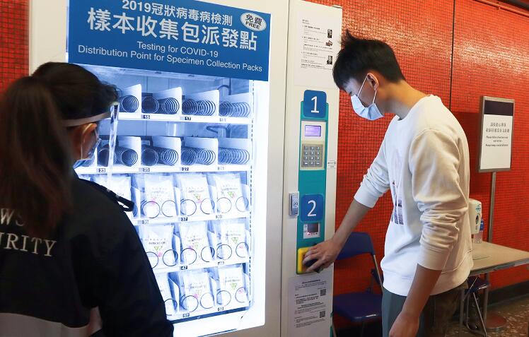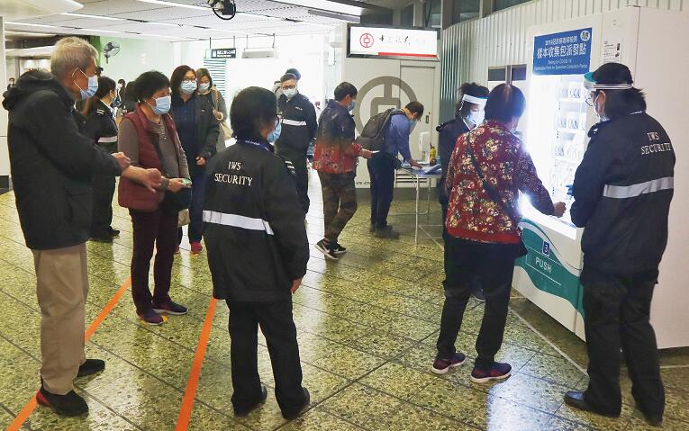 港府7日起在10個港鐵站設自動派發機,每天提供約1萬個收集包,供巿民自助領取樣本收集包,包括牛頭角、葵芳、北角、調景嶺、黃竹坑、大圍、大埔墟、兆康、九龍及青衣站。有前來領取樣本包的市民表示,在港鐵站內有得拎非常方便。