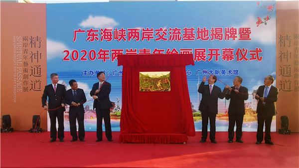 5日,廣東海峽兩岸交流基地揭牌儀式暨2020兩岸青年繪畫展開幕式在廣州市花都區大新美術館舉辦。該活動由廣州市穗臺經濟文化交流中心、廣州大新文創園主辦,廣州市委常委王世彤,廣東省臺辦副主任陳升東,廣州市臺辦主任曾衛東,花都區委書記黃偉林,廣州市臺協會會長、大舜企業集團總裁、大新美術館創辦人王慶祥,石頭記珠寶有限公司董事長蘇木卿等出席。在穗臺商、臺青代表、兩岸藝術界嘉賓參加活動並參觀石頭記礦物園、大新文創園展區。