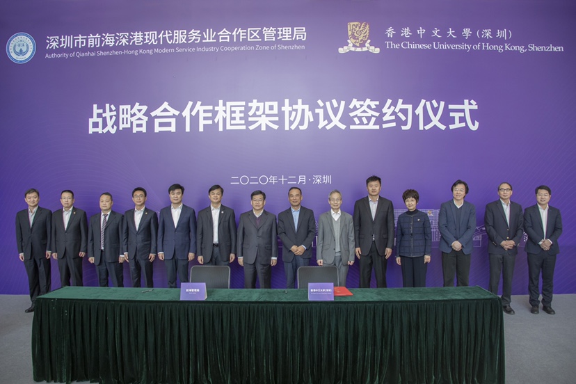 12月7日,香港中文大學(深圳)與深圳市前海管理局簽署戰略合作框架協議,雙方決定探索政府與大學合作新模式,在制度創新、科技創新、現代服務業、教育、醫療、社會民生等多領域開展創新性深度務實合作。