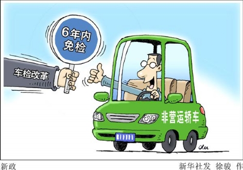 11月20日起,公安交管部門在實行6年以內的非營運6座以下小微型客車免檢基礎上,進一步擴大免檢範圍,將6年以內的7-9座非營運小微型客車(麵包車除外)、非營運大型轎車納入免檢範圍。