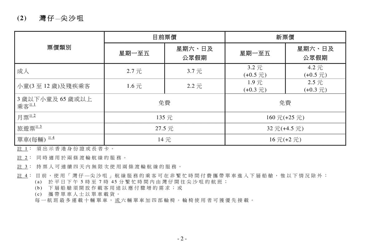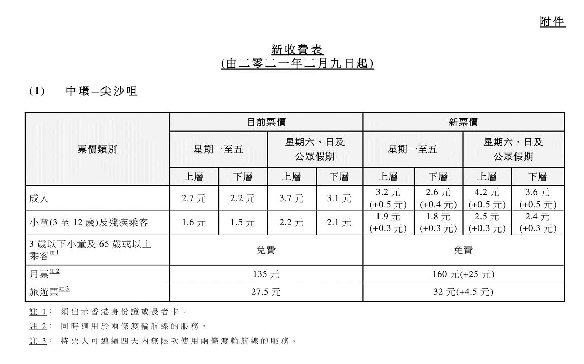 政府表示,天星小輪於2019年4月申請提高兩條渡輪航線每程票價3角至5角。